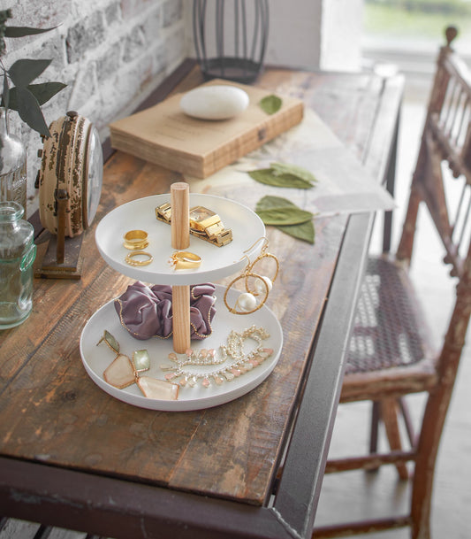 Two-Tier Jewelry Tray With Mirror - Steel + Wood