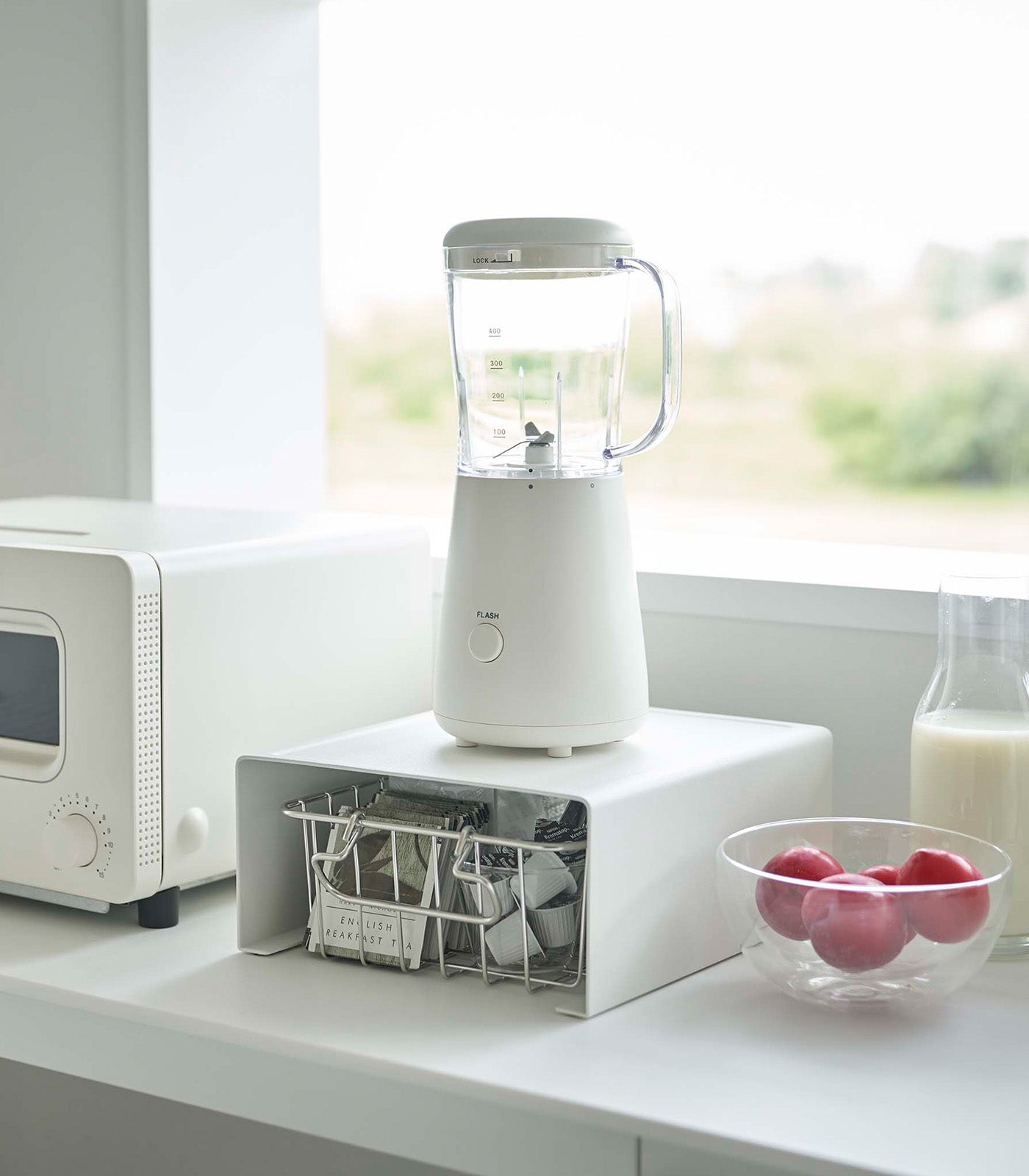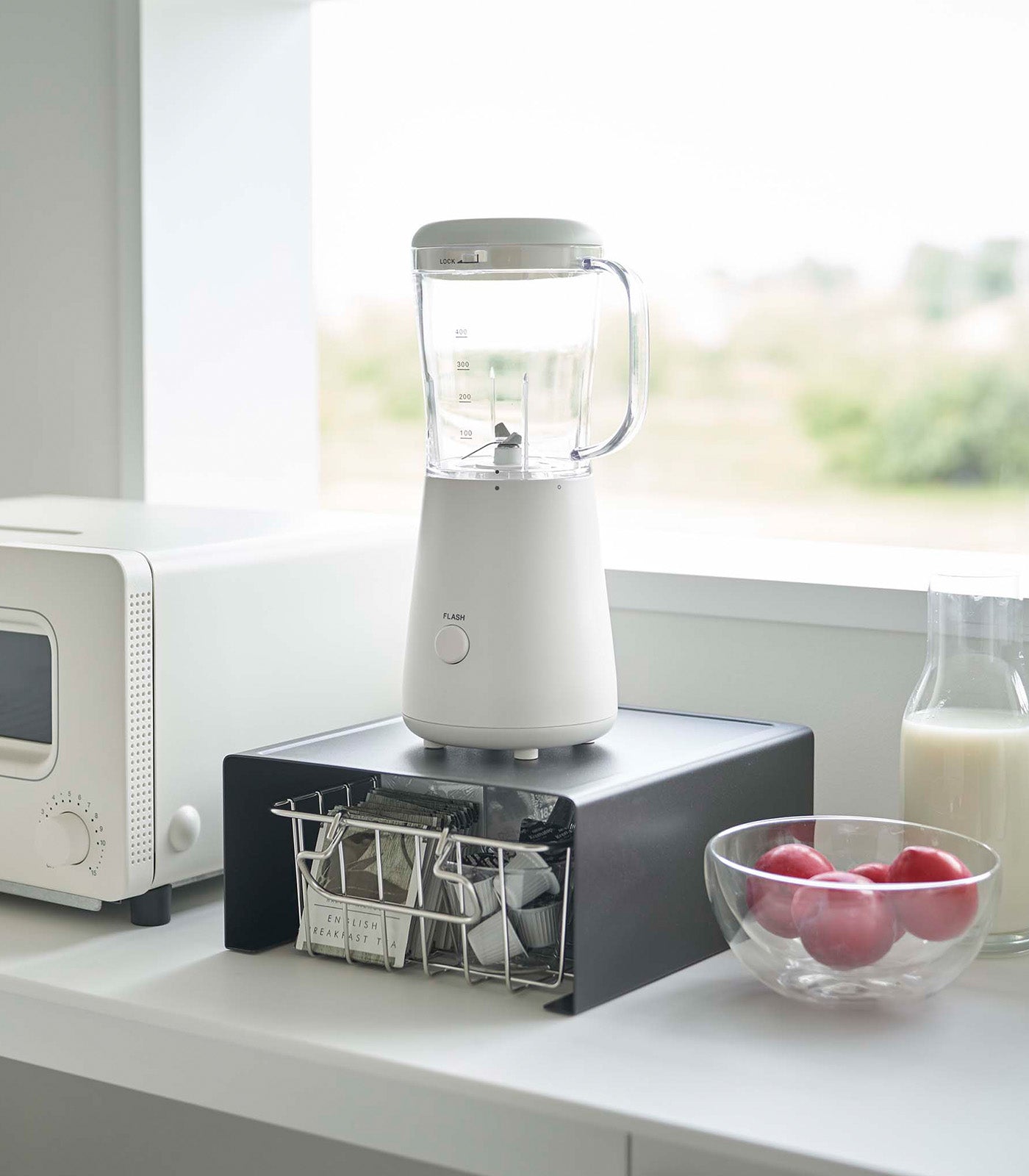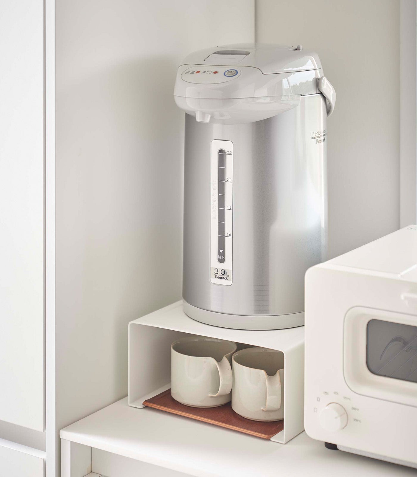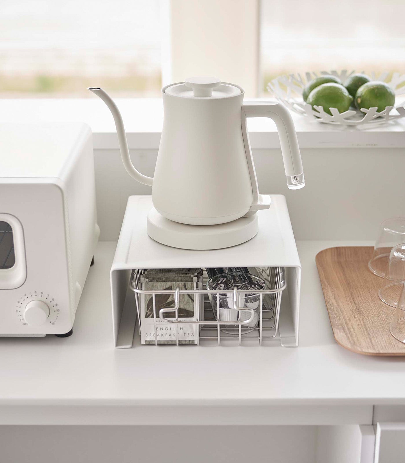 A quick boost for countertop storage. Are kitchen appliances like electric kettles and coffee makers hogging precious countertop space? If so, this sturdy rack will do wonders for you. Place your appliances on top and utilize the space under the rack to keep tea bags, napkins, or other kitchen miscellanea handy without cluttering the kitchen. The sleek steel frame lends a clean look and sturdy support, sure to streamline everyday moments in the kitchen.