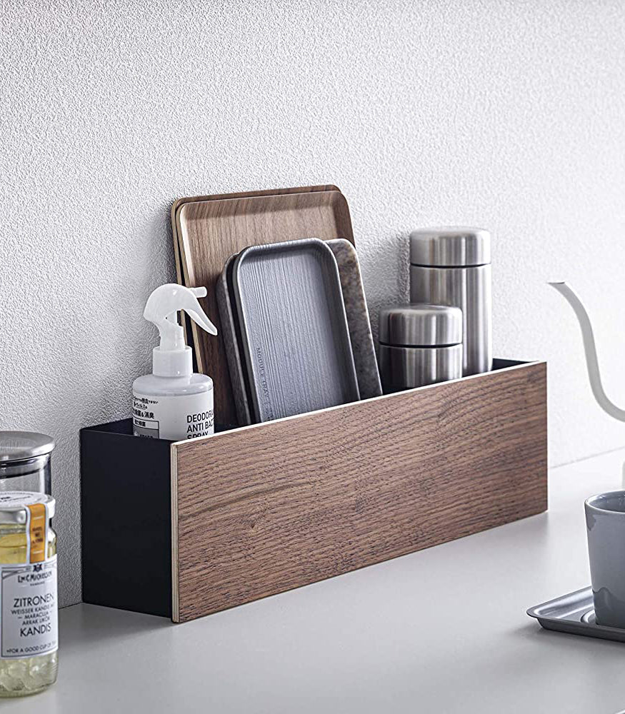 Let your imagination run free, not your desk items. These chic, clean caddies will lend a little organization to any room in the home. Pop one of these in your kitchen, living room, office, or bathroom to immediately declutter your tabletop. Gather remote controls, electronics, cleaners, and anything else that’s junking up your surfaces. The dividers are both magnetic and adjustable for maximum flexibility (and thanks to the strong magnet, the divider won’t slide out of place). Small version also available.