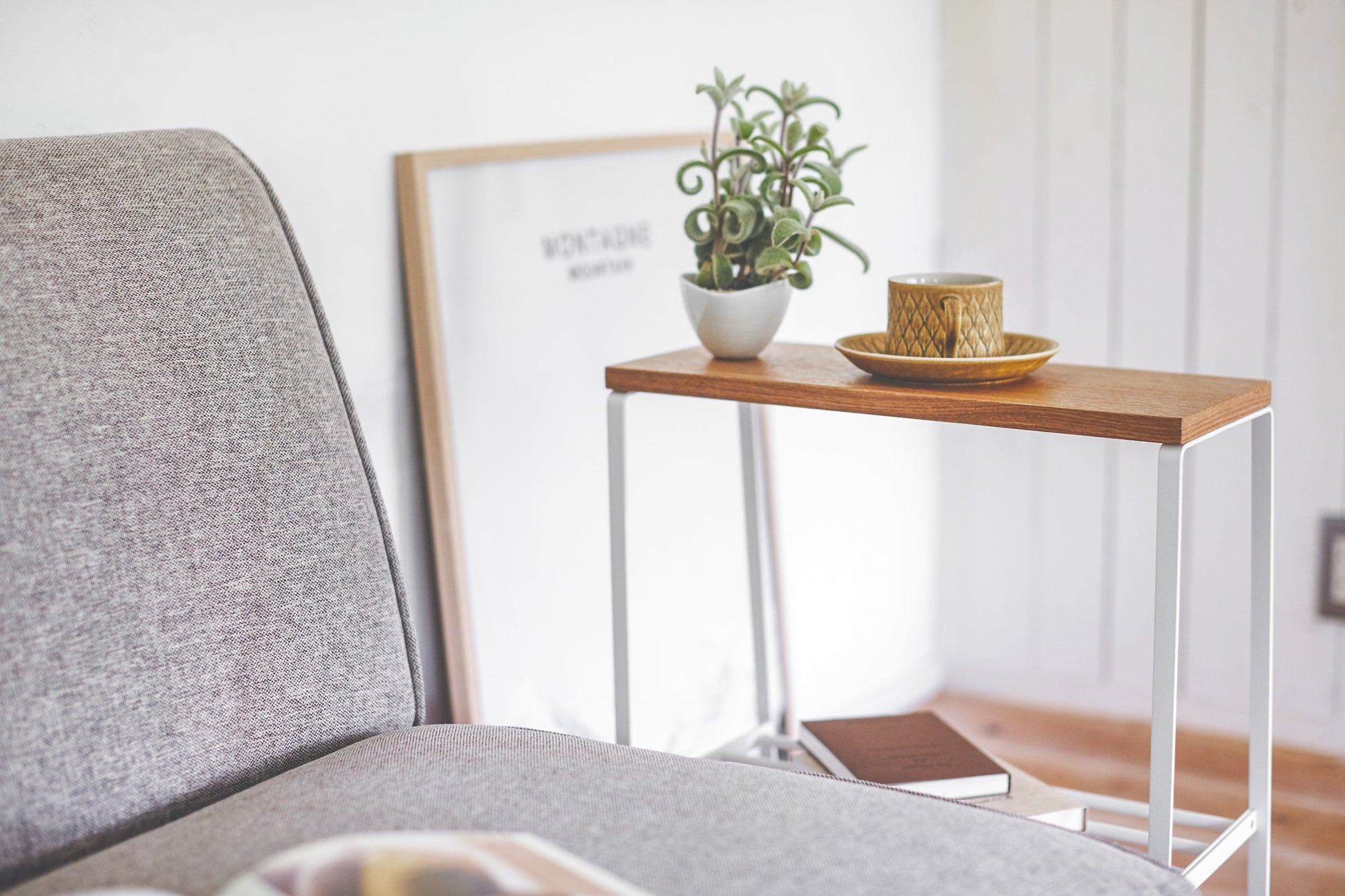 Side table end-game. This slim and stylish end table is the secret fix for tight spaces. If you would love to fit an end table into a tight corner, try this adorable end table with a narrow frame and minimalist footprint. Or, tuck one against a wall to liven up empty wall-space without eating up room for walking. A perfect perch for your coffee or afternoon tea, a few books, and maybe even a plant.