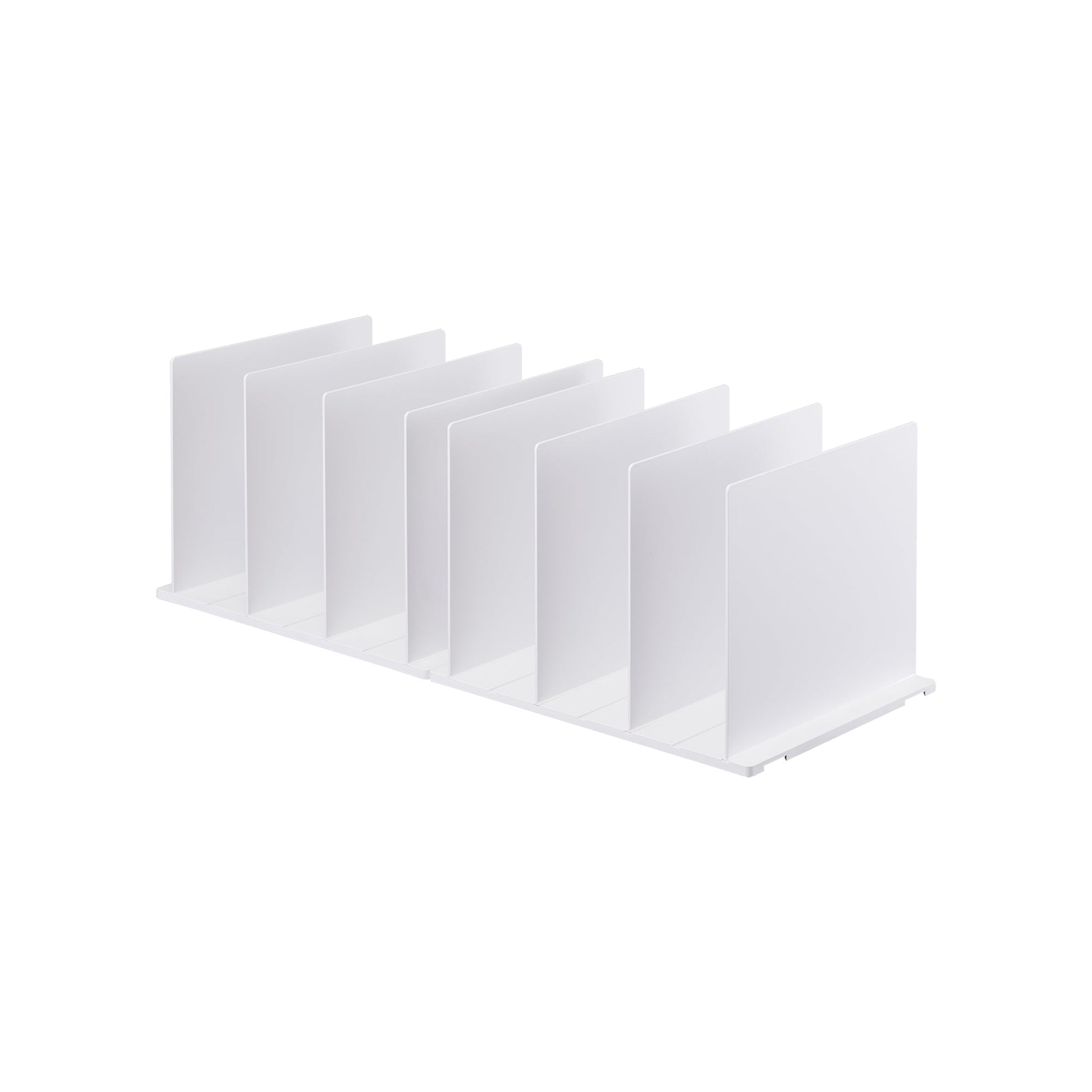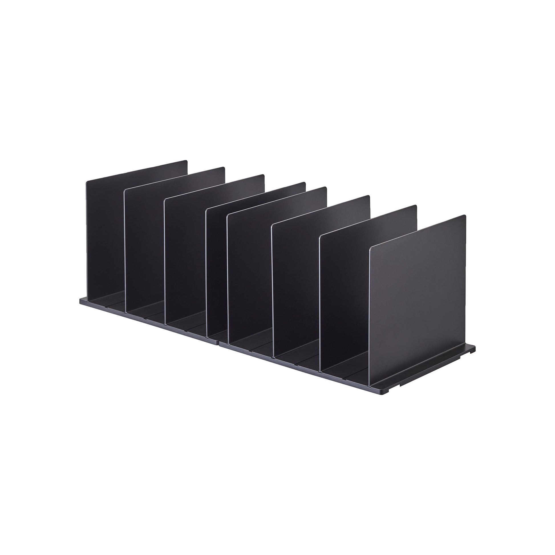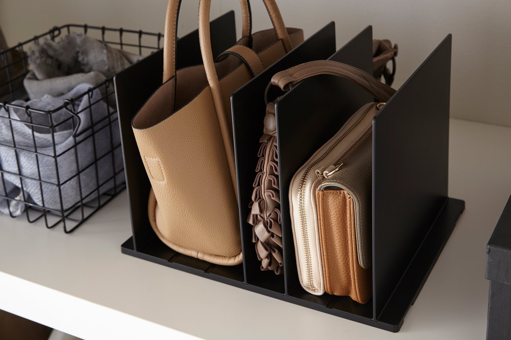 Nip it in the bag. Clutches, handbags, pocketbooks—they come in every shape and color! There’s no one-size-fits-all solution with purse storage, but this customizable organizer takes away all the frustration. Product comes with two square bases that can be snapped together or used independently. Eight vertical dividers that can slide into the grooves found in the base are also provided. Lifestyle images largely show the set of two snapped together. Lock the organizer into position according to the size of your bags to keep them all upright, perky, and pristine. Finally, a way to prevent your precious handbags from crushing one another in a giant heap.