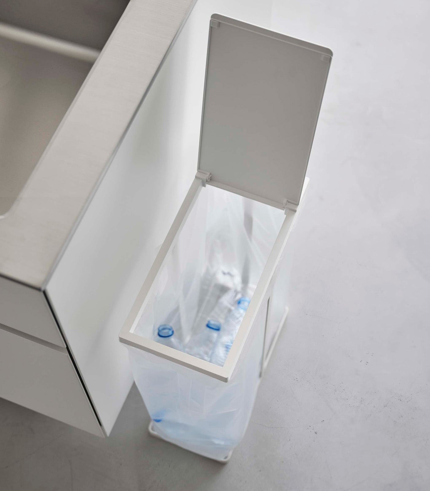 Best bin-less bin. Simplify waste management with this slim and minimal design. A lightweight yet sturdy frame, perfect for lining up multiples to collect different types of recyclables, or as a portable option for outdoor settings. Simply line with a trash bag and lift the lid easily with one hand. Gets the job done!