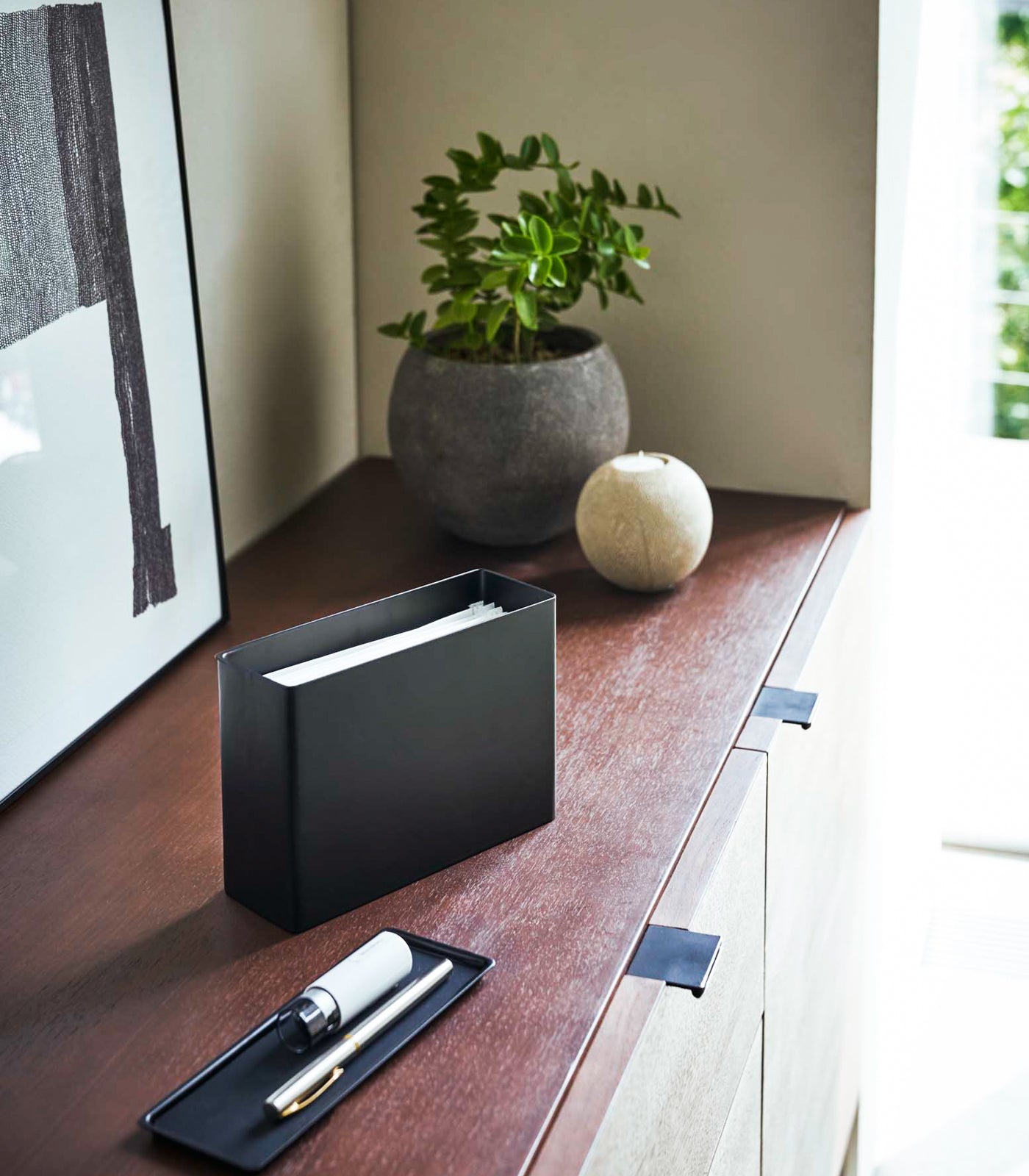 How to mask your masks. This mask dispenser was designed for life in Japan, where face masks have been considered courteous and commonplace for years. Keep your masks sanitary and dust free when not in use. Moreover, it separates clean masks from the ones that need washing. Pulling a fresh mask from the bottom of the dispenser is quick and contactless, so it’s good for sharing. The mask dispenser can be attached to metal surfaces using the provided strong magnet or left freestanding on a table or countertop. Thanks to its versatile design, the dispenser fits perfectly in any environment or household.