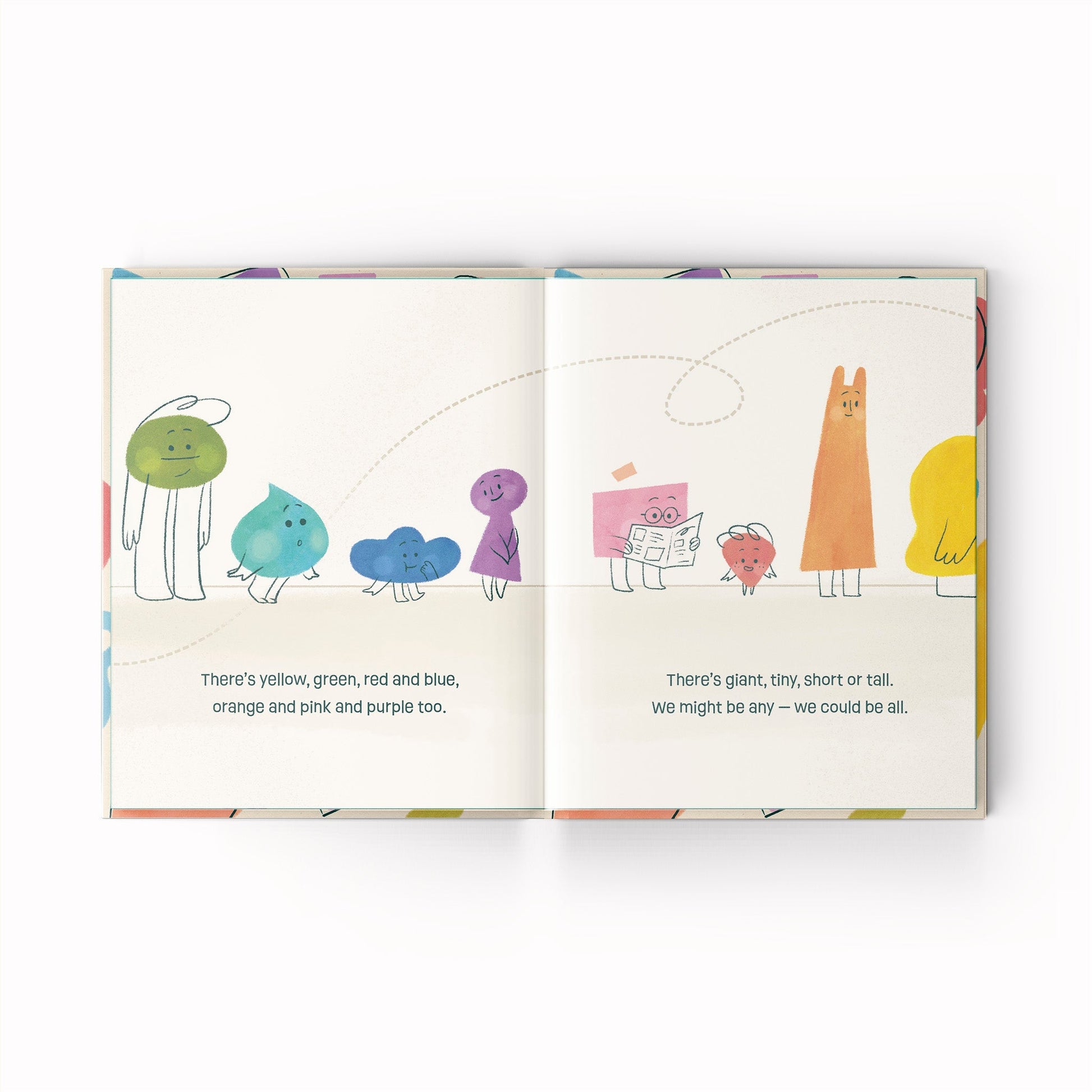 This uplifting rhyming picture book follows a blue-green narrator on a journey of self-discovery. In a world where everyone comes in different shapes, colors, and sizes, this character is often asked to fit into one color or choose between two. Readers follow along as it navigates questions like “Who am I? Where do I belong?” and will discover the most empowering answer of all: “I’m mostly me.”