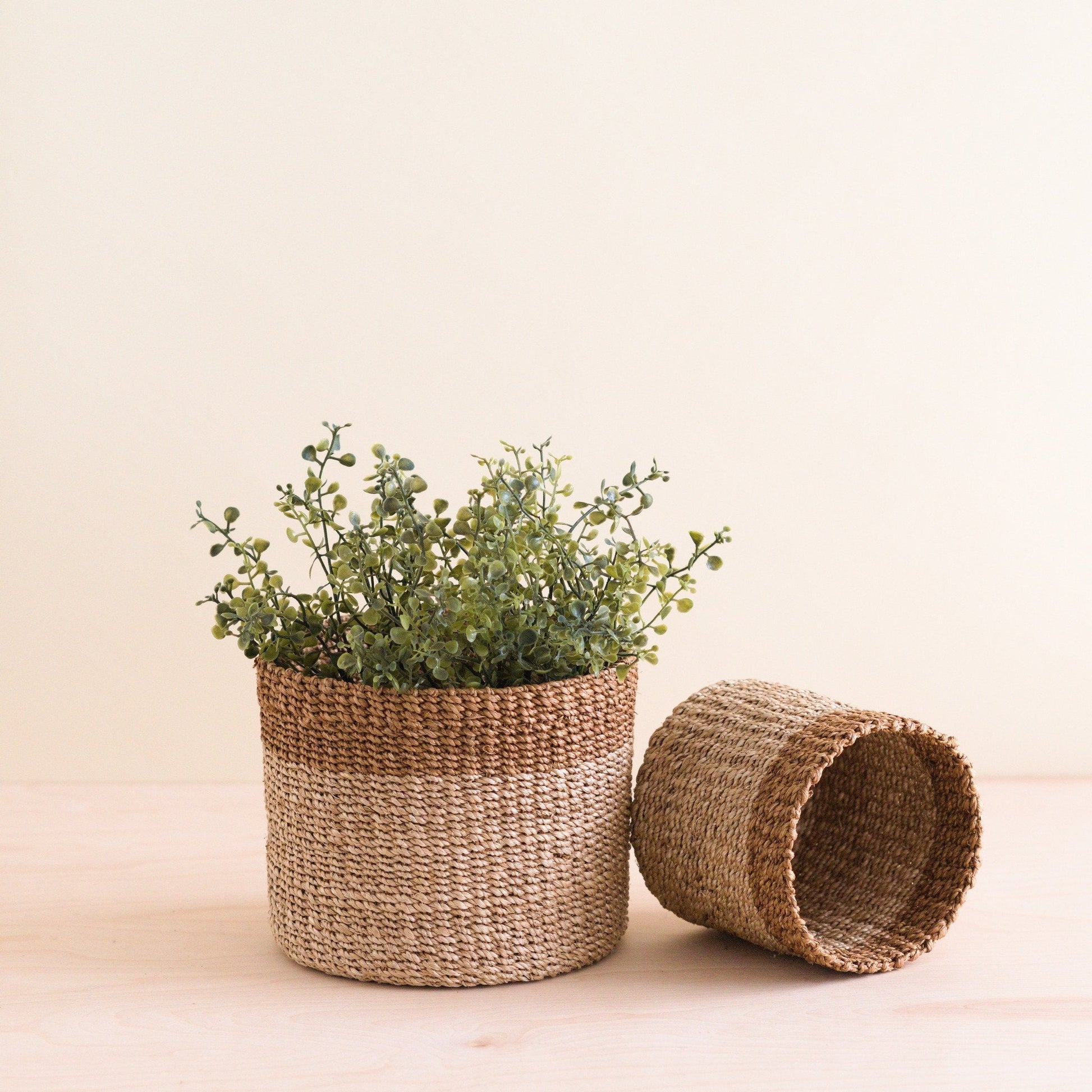 Cute and versatile, the set of 2 natural and brown tabletop mini baskets are perfectly suited to any modern home. They can be used to store everyday objects or your favorite houseplants. Our all-around handwoven baskets are stylish and functional, adding a natural vibe to just about any room. Each piece is carefully handcrafted by artisans in the Philippines, and made sustainably with manila hemp. Every purchase goes towards empowering our artisan communities. Since each piece is handwoven, please expect slight variation in design, color, shape, and size.