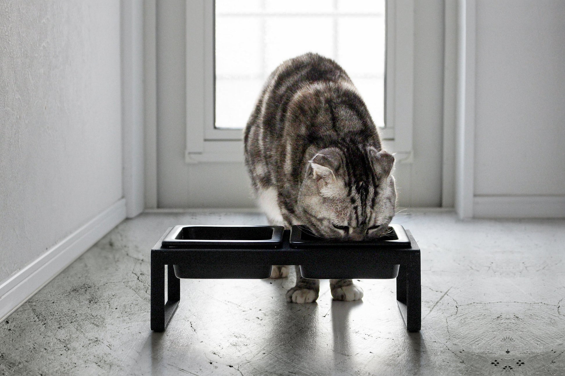 Your pet wants this right meow. Finally, pet food bowls you won’t mind looking at day after day. Chic ceramic bowls, a minimalist frame, and non-scratch padded feet. Two paws up for cats and small dogs!