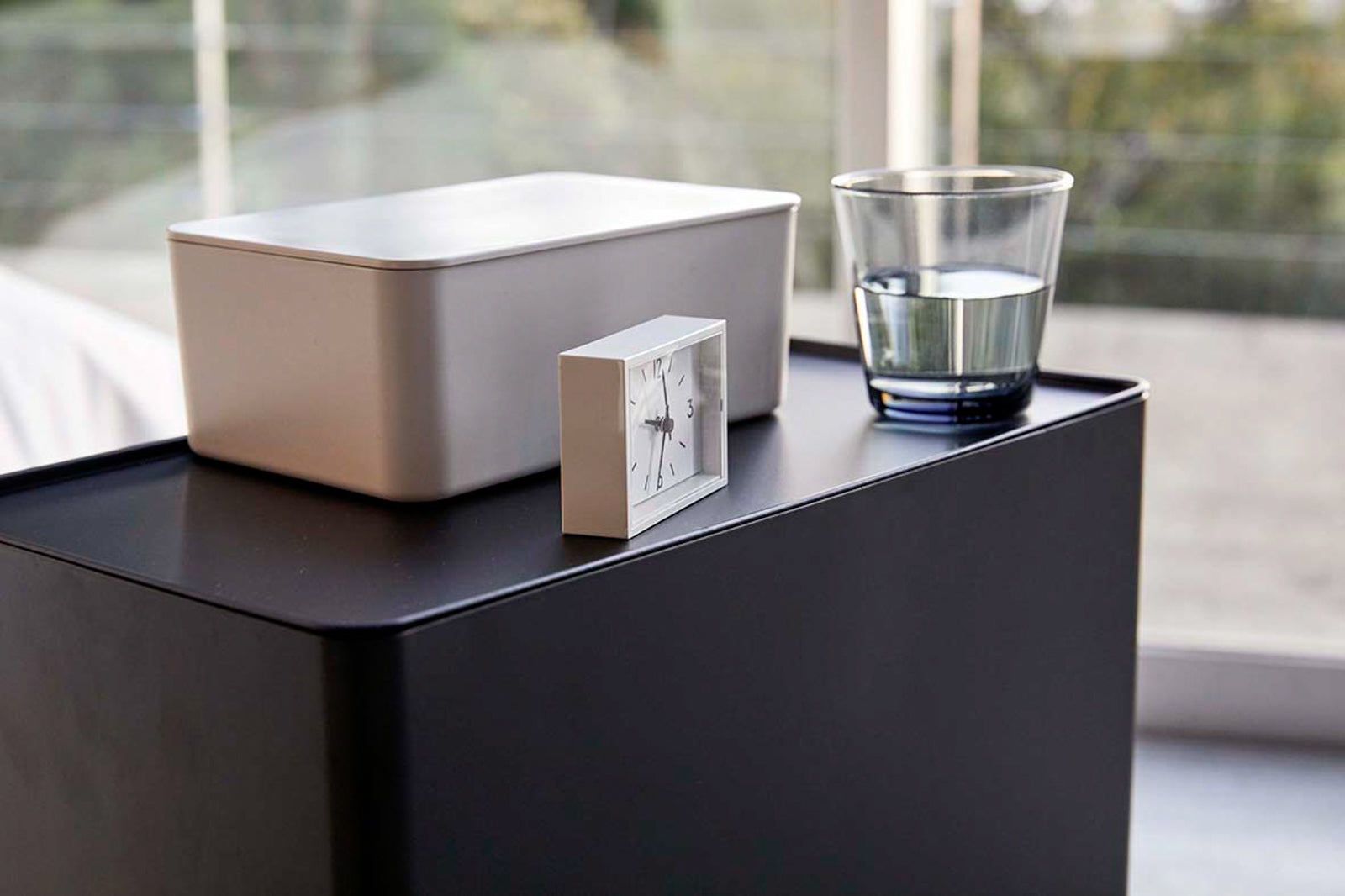 A diaper magician! Pamper your little one. *Poof* and the diaper storage unit rolls towards the wall, transforming the unit into a simple side table. Wheel the unit back out again to pop a nappy from the bottom of the stack. Lift open the lid to insert a fresh stack. The recessed top also fits our Wet Tissue Case perfectly, matching the minimalist aesthetic of the diaper holder.