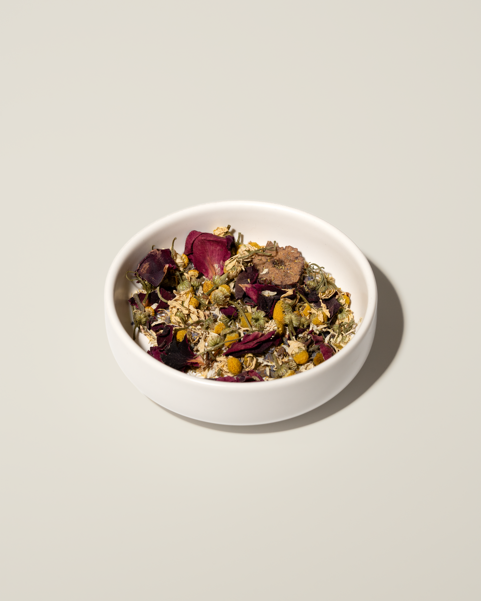 Chamomiles, organic rose petals, lavender, jujube dates, lemon balms.
