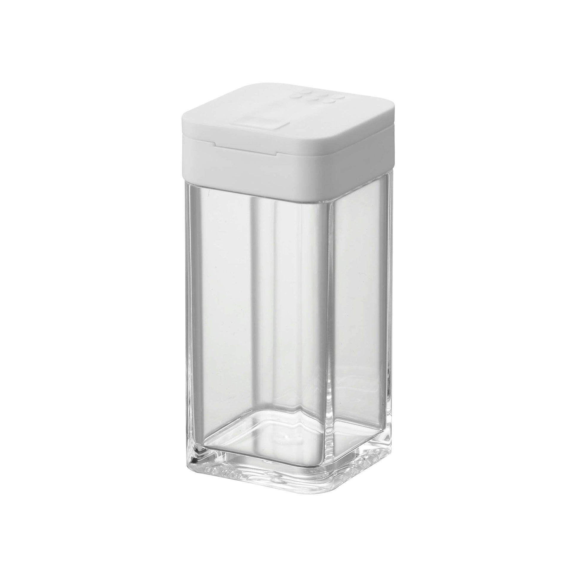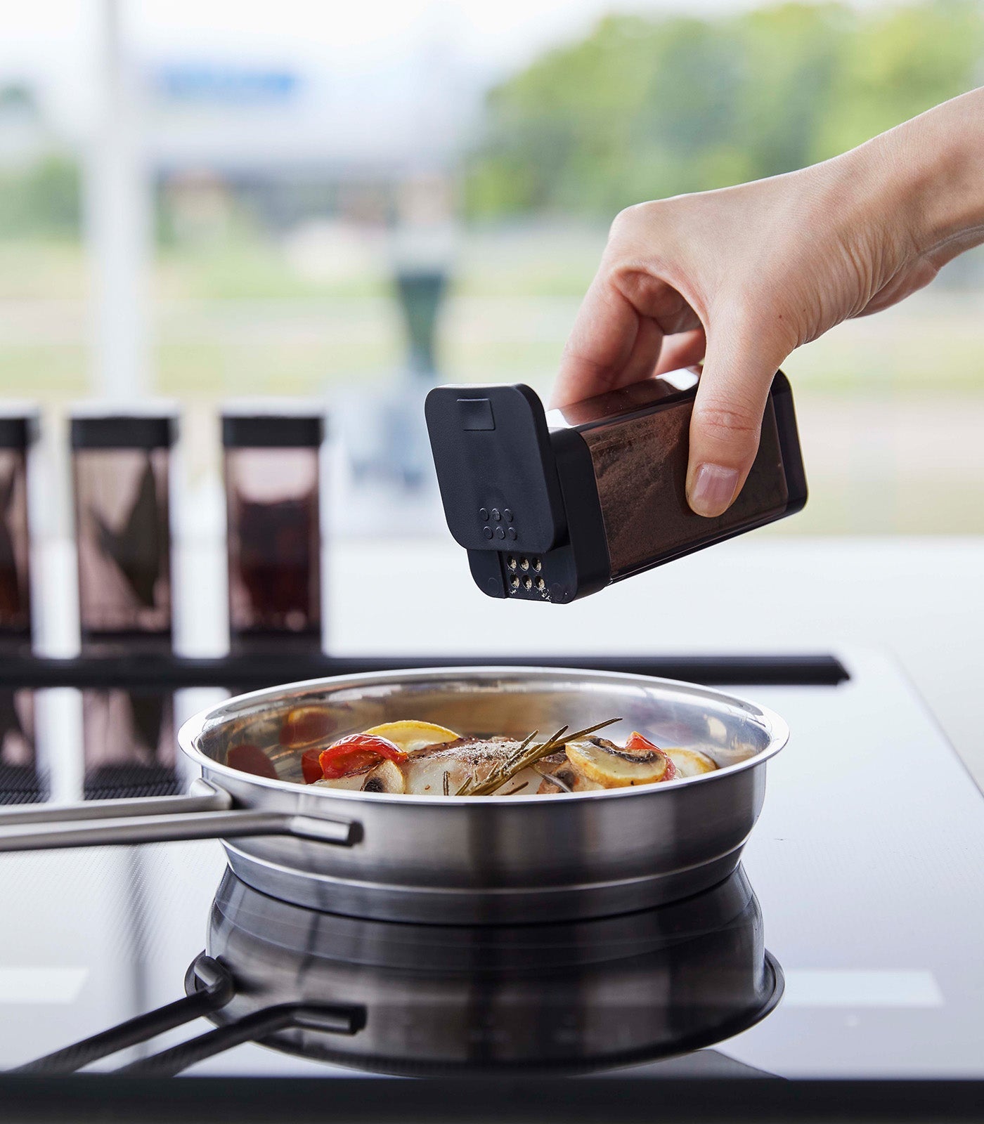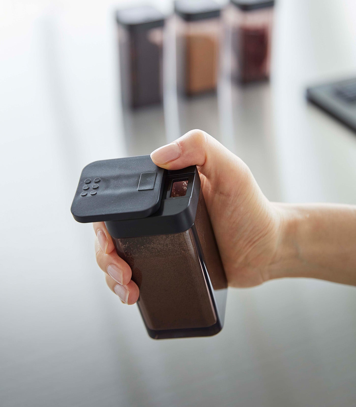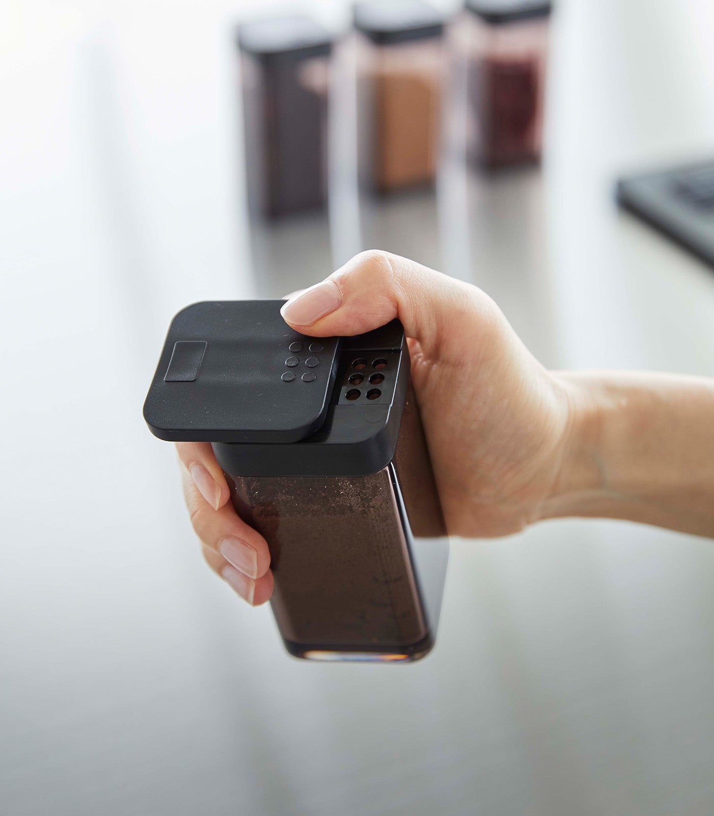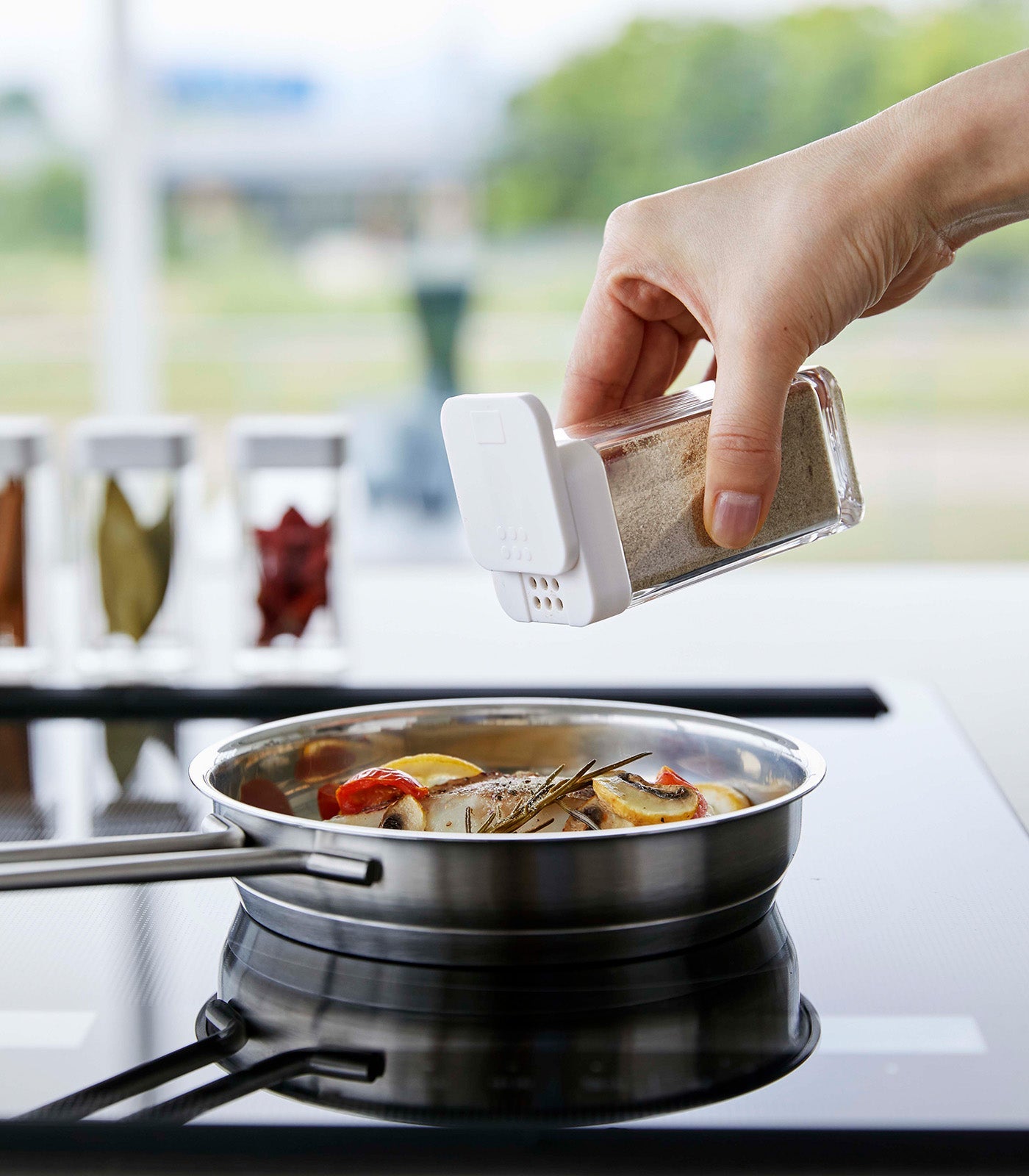 Square the spices away. Shake this bottle and season your culinary creations with just one hand like a pro. These stylish spice bottles feature a sliding lid that you can push open with your thumb to access either the large or small opening. The wide rim allows for easy refilling and the rectangular shape means you don’t waste any space in your cupboard or spice rack. Line up all your spices for the full effect!