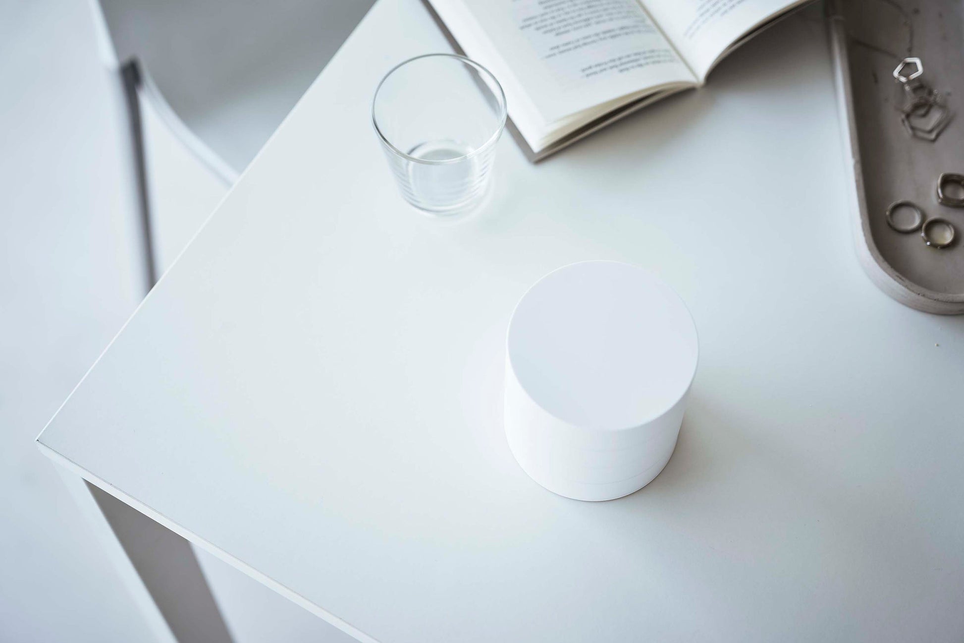 Forget me knot. These delightfully dainty, tiered jewelry towers feature four surprisingly roomy, swivel-out compartments. Fan out and nestle in precious stones and strands to keep them tucked away and tangle-free. The sectioned version is equipped with tons of small compartments, making it a perfect solution for stud earrings and tiny hoops that may otherwise lose their pair in the crowd. With a swiveling lid that keeps contents in place, it's also sure to be a jewelry maker and craft enthusiast favorite.