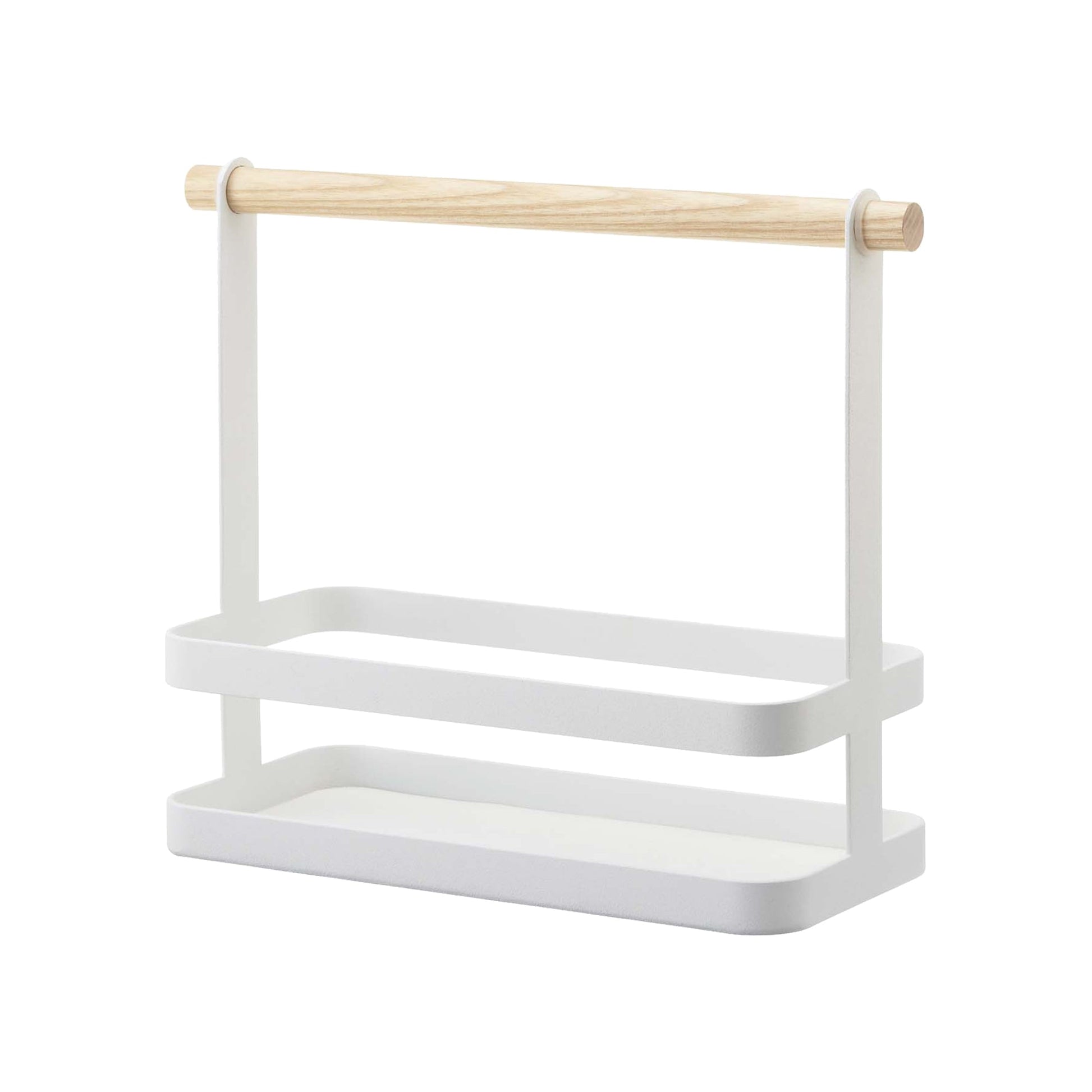 Oils and spice and everything nice. Scoop up this handled spice caddy on your way to or from the dinner table. This simple spice rack can hold a variety of spices based on what’s for dinner. Use it as a salad dressing or a condiments caddy to ferry your favorite foods to and fro. We can imagine a use for this caddy in other rooms of the home too, like a bathroom countertop, for example.