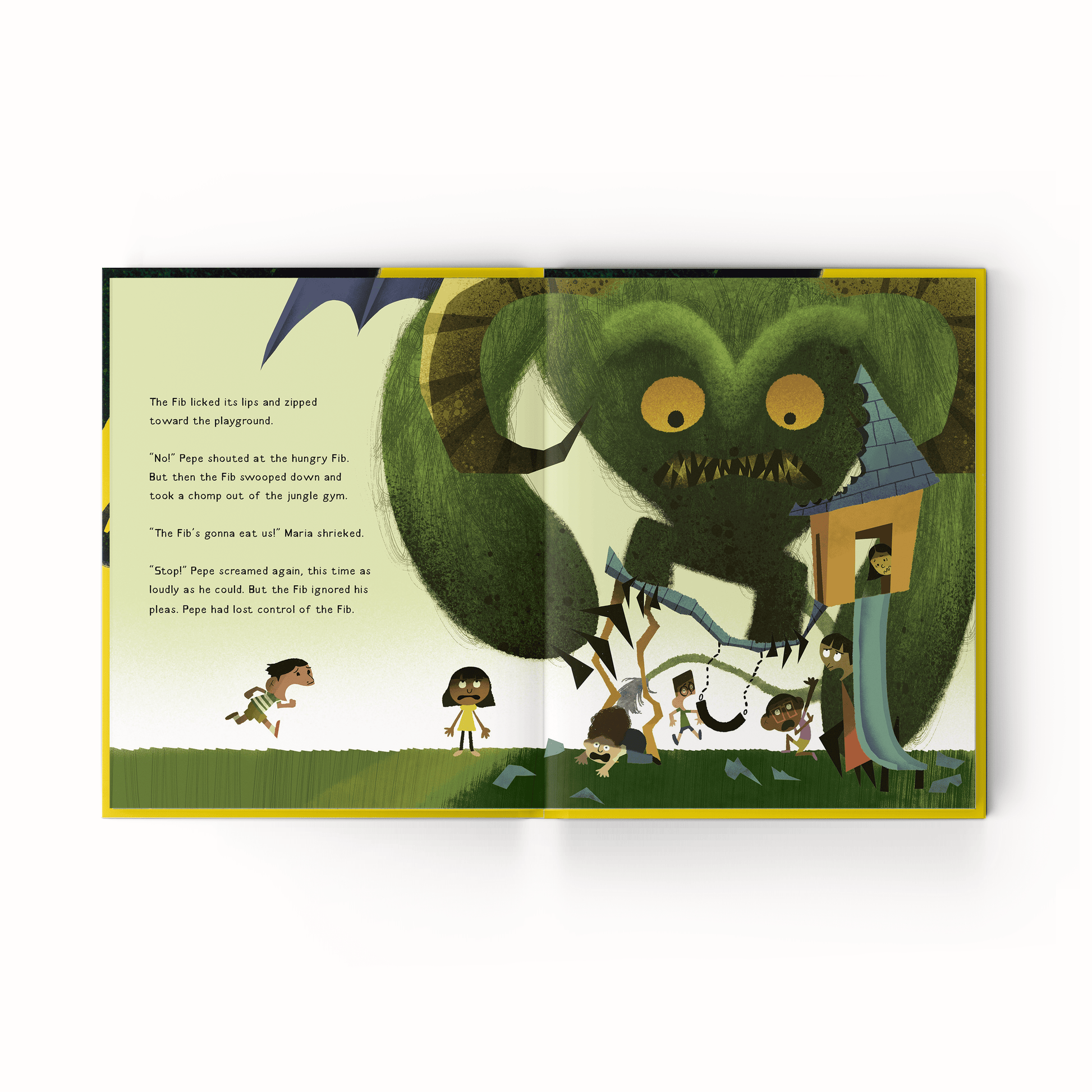 The line between imagination and lie blur in The Fib by Bram Stoker Award-Winning horror and science fiction writer Pedro Iniguez. When Pepe struggles to find something exciting for show and tell, he spins a little lie about a magical creature with horns like a ram, claws like a bear, wings like a bat, eyes like an owl, and a tail like a lion. But, Pepe and his class soon discover that this harmless fib takes on a life of its own— literally— growing into a giant, uncontrollable monster that threatens to eat the entire school.